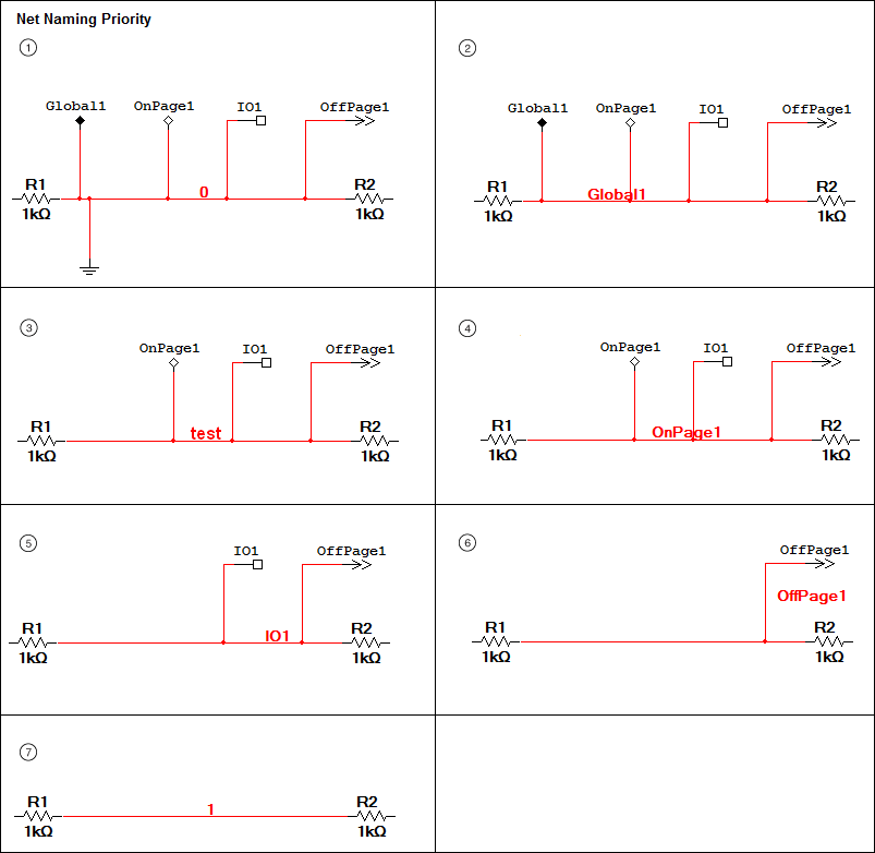 The figure above shows the net naming priority in order of precedence from highest to lowest. Refer to the key below: