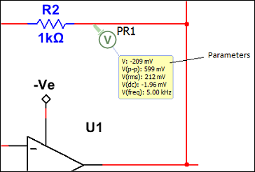 The Digital Probe is special in that it displays the instantaneous value of the digital signal directly inside of the probe symbol. It does not have a Parameters tab in its properties dialog.