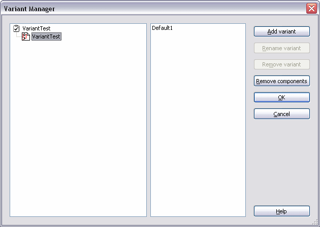 - Select Tools»Variant manager to display the Variant Manager dialog box.