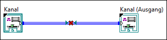 Diese Kanalverbindung tritt in ein SubVI ein und verlässt dieses durch das Anschlussfeld wieder. Da Kanalverbindungen keine Datenabhängigkeit erzeugen, macht es keinen Sinn, wenn ein Kanal durch ein SubVI hindurchgeführt wird.