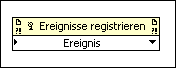 Vergewissern Sie sich, dass ein Ereignis mit dem Eingang Ereignisquelle verbunden ist. Zur Auswahl eines Ereignisses klicken Sie an der Funktion Für Ereignisse registrieren auf den Pfeil nach unten. Sie können aber auch mit der rechten Maustaste die Funktion "Für Ereignisse registrieren" klicken und Ereignisse aus dem Kontextmenü wählen.