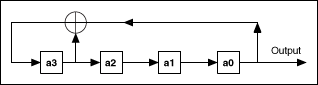 die Modulo-2-Addition ist und a0 bis a3 die Schieberegister sind.