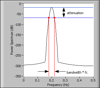 Normalisierte Bandbreite ist der mit Mittenfrequenz multiplizierte Wert zur Normalisierung der Bandbreite bei Dämpfung (dB) im Leistungsspektrum. Die normalisierte Bandbreite muss immer größer als 0 sein. Der Standardwert lautet 0,15.