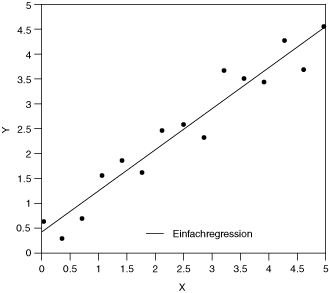 y[i] = ax[i] + bWenn das Rauschen in Y gaußverteilt ist, muss das Verfahren der kleinsten Quadrate angewandt werden. In der Abbildung ist die Linearanpassung dargestellt, die aus diesem Verfahren hervorgeht.