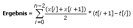 Vor der numerischen Integration werden die Werte in T in aufsteigender Reihenfolge angeordnet und der Inhalt von X wird T entsprechend umsortiert. Die numerische Integration wird nach folgender Gleichung durchgeführt: