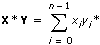Es sei X die Eingangsfolge für den X-Vektor und Y die Eingangsfolge für den Y-Vektor. Das VI berechnet das Skalarprodukt X * Y mit folgender Gleichung.