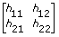 wobei h11, h12, h21 und h22 die Elemente der Rotationsmatrix sind.