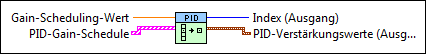 Siehe VI "Gain Scheduling Simulator" unter labview\examples\control\PID als Anwendungsbeispiel für "PID-Gain-Schedule" (VI).
