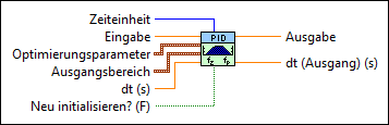 Ausgabe gibt den Controller-Ausgangswert des PID-Algorithmus aus, mit dem die Regelung durchgeführt wird. Das VI ermittelt die Länge des Arrays Ausgabe anhand der Größe des Arrays Eingabe. | ||||||