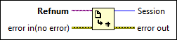 Returns the underlying viSession handle from a LabVIEW IVI or VISA refnum. You can use the viSession handle in an environment other than LabVIEW. For the Refnum parameter of the Refnum to Session VI and the Session to Refnum VI, pass only a VISA or IVI refnum created using the LabVIEW VISA Open function or the IVI New Session function. Passing an invalid refnum or a refnum constant can lead to undefined behavior and is not supported.