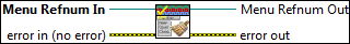 Menu Refnum Out returns the Menu Refnum In parameter unchanged. |