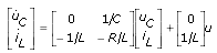 By manipulating the previous two equations, you can deduce the continuous state-space model for this RLC circuit using the following two equations: