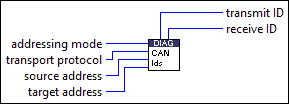 ISO 15765-2 specifies a method (extended/29 bit) of creating CAN identifiers for diagnostic applications given the addressing mode (physical/functional), the transport protocol (normal/mixed), and the 8-bit source and target addresses. This VI implements the construction of these CAN identifiers. You can use them directly in Open Diagnostic on CAN FD.vi.
