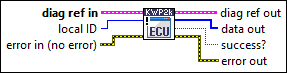 diag ref in specifies the diagnostic session handle, obtained from Open Diagnostic on CAN FD.vi or Open Diagnostic on IP.vi and wired through subsequent diagnostic VIs. Normally, it is not necessary to manually manipulate the elements of this cluster. | ||||||