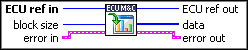 ECU ref in is the task reference which links to the selected ECU. This reference is originally returned from MC ECU Open.vi or MC ECU Select.vi, and then wired through subsequent VIs. | ||||||