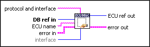 MC ECU Select.vi creates an ECU reference handle linked to the selected ECU name. MC ECU Select.vi does not start communication. This enables you to use MC Set Property.vi to change the properties of an ECU task. After you change properties, use MC ECU Connect.vi to start communication for the task and logically connect to the selected ECU. Prior to calling MC ECU Select.vi, an available ECU name can be queried by calling MC Get Property.vi with the parameter ECU/Name.