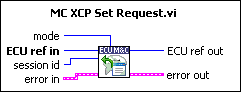 MC XCP Set Request.vi implements the XCP command SET_REQUEST and is used to save session configuration information into non-volatile memory in the ECU.
