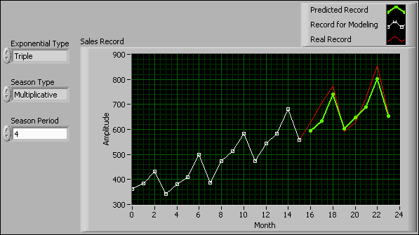 Refer to the Exponential Prediction VI in the labview\examples\Time Series Analysis\TSAGettingStarted directory for an example that demonstrates how to forecast the future values of a univariate time series based on the exponential smoothing.
