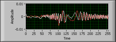 The adaptive transform, also called the adaptive chirplet decomposition, computes the weight for each elementary chirplet. Because the sinusoid function is a subset of the chirplet, the adaptive transform is more powerful than the Gabor transform but generally requires more computing time. The adaptive transform and the adaptive expansion are unique to the LabVIEW Time Frequency Analysis Tools.