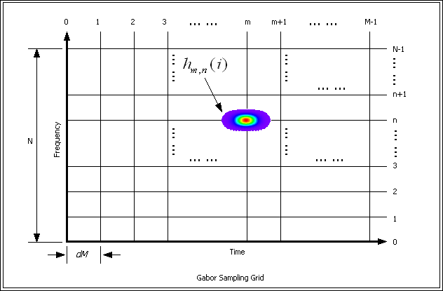 You can consider hm,n(i) as the discrete atoms in the time-frequency domain as shown in the following grid: