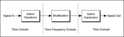 Characteristics of time-varying signals that are not obvious in the time domain or in the frequency domain alone can become clear in the time-frequency domain when you apply the discrete Gabor transform. After you extract the useful features of a signal in the time-frequency domain, you can apply the discrete Gabor expansion to obtain the time waveform with the extracted features. Similarly, after you suppress the useless components, like noise, in the time-frequency domain, you can apply the discrete Gabor expansion to obtain the time waveform with the noise suppressed.