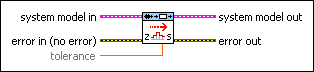 tolerance determines zero-pole cancellations. If the difference between the location of a pole and a zero is within the tolerance, this VI removes the zero-pole pair. You can visually inspect the location difference in the pole-zero plot. The default is 1E-12. | ||