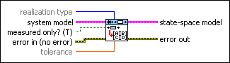 measured only? specifies whether this VI regards the noise stimulus as an input of the resulting system model. If measured only? is TRUE, this VI ignores the disturbance e(t) in the conversion. If measured only? is FALSE, this VI treats e(t) as an input of the system model. The default is TRUE. | ||||||||||