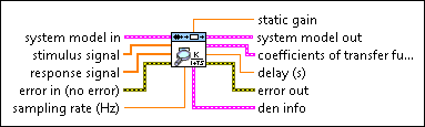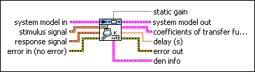 Refer to the following VIs for examples of using the SI Estimate Partially Known Continuous Transfer Function Model VI: