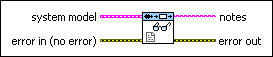 Reads comments from a system model. Use the SI Set Notes to System Model VI to write comments to a system model.