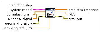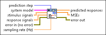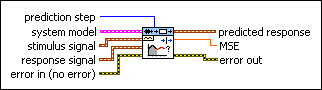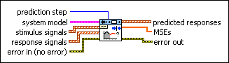 prediction step specifies the prediction interval. The step-ahead prediction response is estimated by the known stimulus and response data up to the time you estimate the response. If prediction step is less than 0, this VI performs the model simulation without containing a disturbance. You cannot set prediction step to 0. | ||