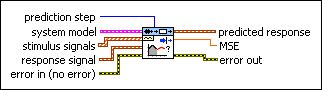 Performs k-step-ahead model prediction on a system model. Wire data to the stimulus signal and response signal inputs to determine the polymorphic instance to use or manually select the instance.