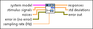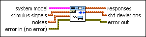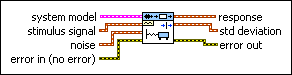Simulates the response of a system model to an input signal. Wire data to the stimulus signal and noise inputs to determine the polymorphic instance to use or manually select the instance.