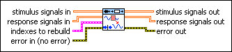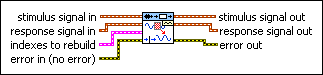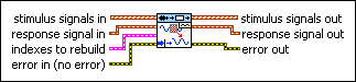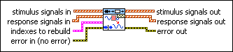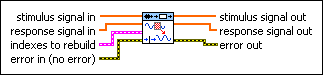 indexes to rebuild specifies the index of the stimulus signal and the index of the response signal. This VI rebuilds the stimulus signal and response signal values at these indexes.