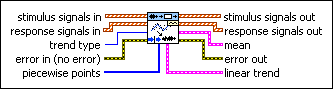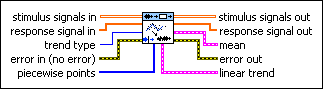 Removes mean and linear steady-state trends from stimulus and response signals. Wire data to the stimulus signal in and response signal in inputs to determine the polymorphic instance to use or manually select the instance.