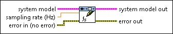 Applies a sampling rate to a system model. Use the SI Get Sampling Rate from System Model VI to retrieve the sampling rate from a system model.