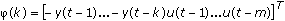 is the data vector from the past input data u(k) and output data y(k).