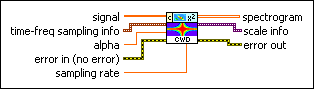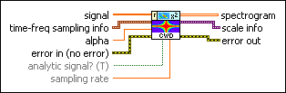 scale info returns the time scale and the frequency scale information of the time-frequency representation, including the time offset, the time interval between every two contiguous rows, the frequency offset, and the frequency interval between every two contiguous columns of spectrogram. Use the TFA Get Time and Freq Scale Info VI to return detailed information about the time scale and the frequency scale. | ||||