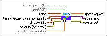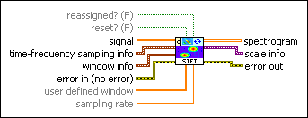 user defined window specifies the sliding window to use to compute the STFT. If you specify a value for user defined window, this VI ignores the settings in the window info input. Use window info to specify a sliding window to use. | ||||
