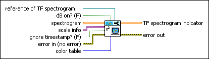 reference of TF spectrogram indicator specifies the reference of TF spectrogram indicator. If you do not wire this input, this VI does not set the scale information and color table for TF spectrogram indicator. | ||||||