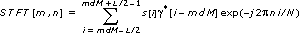 is the window function, L is the window length, dM is time step, and N is frequency bins. The window function determines the joint time-frequency resolution of the STFT. The longer the window length, the better the frequency resolution and the worse the time resolution. When dM is greater than or equal to the window length, L, no overlap exists between sliding windows. When dM is smaller than the window length, the overlap in percent equals 100×((L-dM)/L). For example, if you set the window length to 256 and time steps to 64, the overlap is 75%.