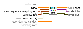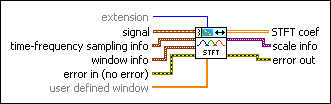 user defined window specifies the coefficients of the sliding window to use to compute the STFT. If you specify a value for user defined window, this VI ignores the settings in the window info input. Use window info to specify a commonly used sliding window, such as the hanning window or the hamming window. | ||||||