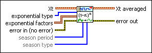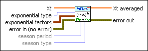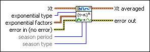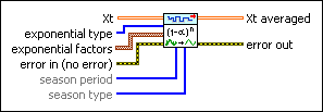 Performs exponential average on a univariate or multivariate (vector) time series. This VI returns a smoothed time series. Wire data to the Xt input to determine the polymorphic instance to use or manually select the instance.
