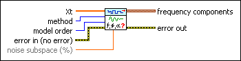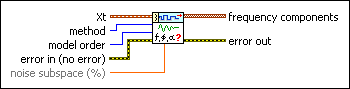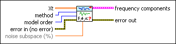 Estimates the modal parametric model of a univariate or multivariate (vector) time series. The modal parameters include magnitude, phase, damping factor, and natural frequency. Wire data to the Xt input to determine the polymorphic instance to use or manually select the instance.