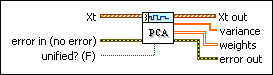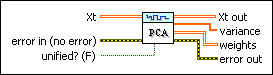 Performs principal component analysis (PCA) on a multivariate (vector) time series. Wire data to the Xt input to determine the polymorphic instance to use or manually select the instance.