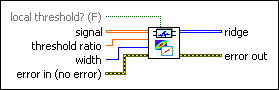 ridge returns the ridges this VI detects. ridge has the same dimensions as signal. The values in ridge are 0 or 1, where 1 indicates that a peak exists at the location along the row direction. Use an intensity graph to display the ridges. |