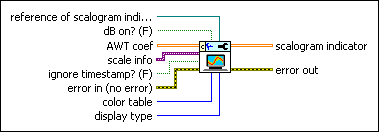 reference of scalogram indicator specifies the reference of scalogram indicator. If you do not wire this input, this VI does not set the scale information and color table for scalogram indicator. | ||||