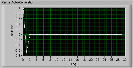 The value of the Partial Auto-Correlation plot in the previous figure becomes zero when lag equals two or greater. Therefore, a suitable AR order for this model is two.