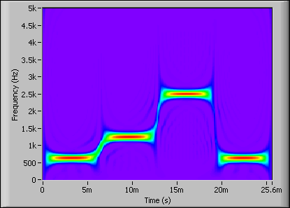 The LabVIEW Time Frequency Analysis Tools also provide two other Cohen's class methods—the Choi-Williams Distribution (CWD) and the Cone-Shaped Distribution (CSD).