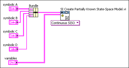 Use the SI Create Partially Known State-Space Model VI to build the symbolic state-space model for this circuit, as shown in the following figure: