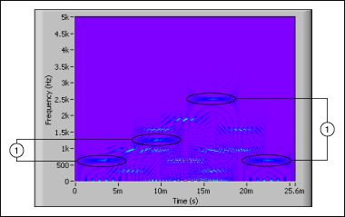 In addition to converting real-valued signals to analytic signals to reduce cross-terms in the WVD, you can use other Cohen's class methods and the Gabor expansion-based spectrogram, also called the Gabor spectrogram, to reduce cross-term interference. The Gabor spectrogram is a method unique to the LabVIEW Time Frequency Analysis Tools.